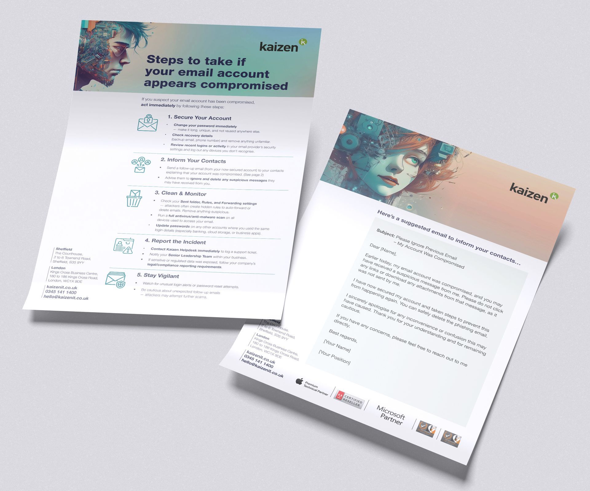 At Kaizen IT, we've helped countless organisations respond to and recover from compromised email accounts. Through our experience, we've developed a helpful playbook that outlines exactly what to do when an email compromise occurs, helping you act quickly and effectively to minimise the damage.